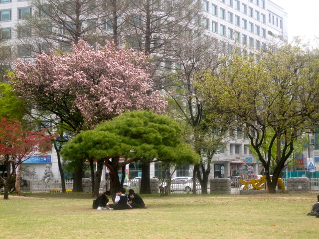 | Lite blomster igjen i Yoido Park. Her arrangeres det Kirsebærblomstringsfestival hver vår. |
