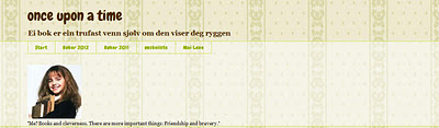 Det er jo så mange fine bokbloggere der ute, så det var ikke et enkelt valg! Men av bloggerene som jeg liker veldig godt, og som jeg beundrer veldig mye er Mai Lene med bloggen Once upon a time. Hun leser mange bøker, varierte bøker, hun skriver veldig godt, har stor innsikt og skriver på nynorsk. Nevnte jeg at hun bare er 16 år?! Jeg er imponert over alt hun gjør! Flott og herlig jente med super blogg!